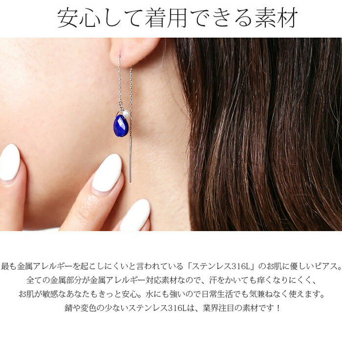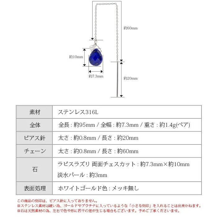 w1s15-as002 楽ギフ対応について 商品概要:アメリカンピアス ラピスラズリ&淡水パール 天然石 ステンレス316L 極細0.8mm あずきチェーン 低アレルギー素材 SUS316L w1s15-as002 ゆらゆら揺れるアメリカンピアスはさりげなく優美な女性らしさを演出して人気急上昇中のアイテム!ビギナーズサイズの0.8mmの極細チェーンで初めての方も挑戦しやすいです。