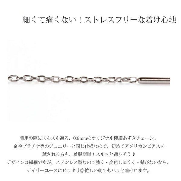 楽ギフ対応について アクアマリン アメリカンピアス レディース 低アレルギー素材 ステンレス316L 両耳用 極細0.8mmあずきチェーン ブリオレットカット ゆらゆら揺れるアメリカンピアスはさりげなく優美な女性らしさを演出して人気のアイテム!ビギナーズサイズの0.8mmの極細チェーンで初めての方も挑戦しやすいです。